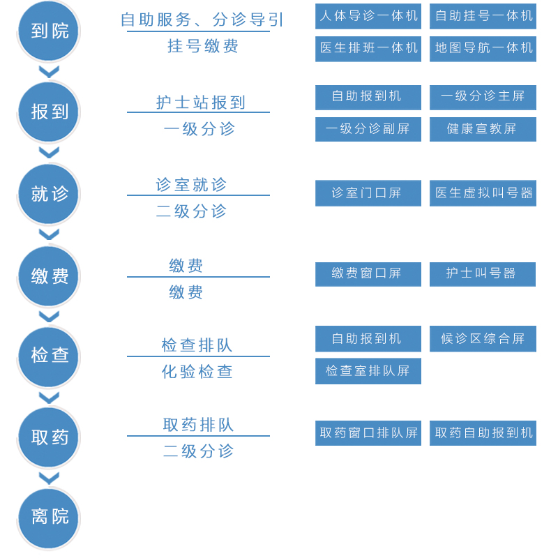 智慧醫療排隊叫號系統,包括門診排隊叫號系統、藥房排隊叫號系統、醫技排隊叫號系統、體檢中心排隊叫號系統、預防接種中心排隊叫號系統等產品,在結合醫院現狀的情況下,結合醫院實際需求定制開發的一整套醫院排隊解決方案,主要用途是幫助醫院提高服務效率,減少患者排隊等候時間,在與HIS/PACS/LIS等醫院管理系統對接的情況下,做到精準的患者分流。